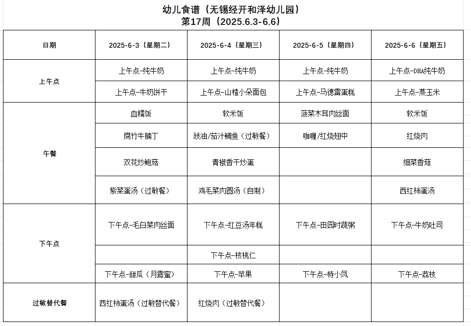 2025年春学期第十七周幼儿健康食谱